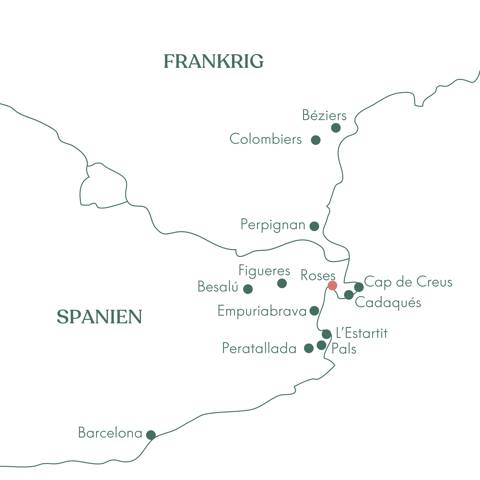 Oplev Catalonien - Spaniens nordlige hjørne. Med base i Roses ud til den lune Costa Brava-kyst skal vi på herlige udflugter i både det nordøstlige hjørne af Spanien og den nordlige nabo, Frankrig. Vi bor i første række til Middelhavet, hvor vi har inkluderet halvpension med vin og vand.